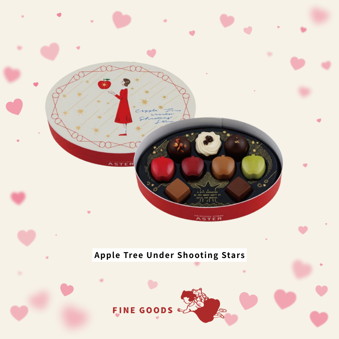 ● 日本情人節限定 ● 送禮自用 ● 酒精朱古力 ● ★ 情人節限定商品將於2月4日截單,情人節前到港。如缺貨將會提早結束訂購。 Apple Princess Aster系列以「星降夜既蘋果奇蹟故事」為主題,講述一個女仔同星降夜出現既神奇蘋果之間既奇遇,整個世界充滿浪漫幻想感,包裝同設計充滿浪漫童話感。 系列以蘋果為靈感,推出多款造型精緻既蘋果形朱古力及主題拼裝盒,口味層次豐富,結合果香同甜味。包裝多以蘋果、星光同幻想故事元素呈現,適合作為情人節或節日送禮,自用 / 送禮都具特色。 ・原產國 : Japan 注意事項: ・相片有少許色差,以實物顏色為準。 ・沒有現貨,必須訂購。 ・每週三截,每週一寄出,日本寄出後7-14日左右收到。受天氣/假期/通關/物流等因素影響,有機會延遲到貨,敬請留意。 ・本公司並沒有持有任何品牌之版權,所有商標及版權均屬於品牌持有人,圖片和資料轉載只作分享用途,敬請留意。